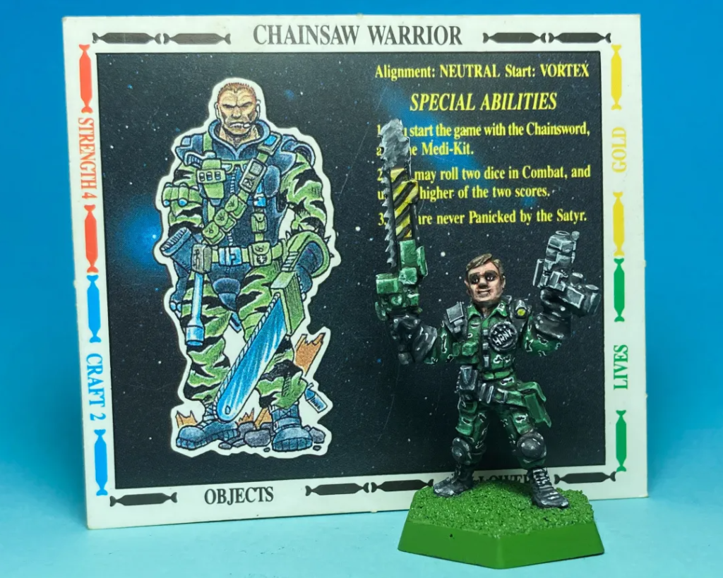 In the Talisman: Timescape expansion, there are multiple character cards for sci-fi figures (I do enjoy a bit of blending between fantasy and sci-fi!), and the Chainsaw Warrior seemed the obvious choice for reference.